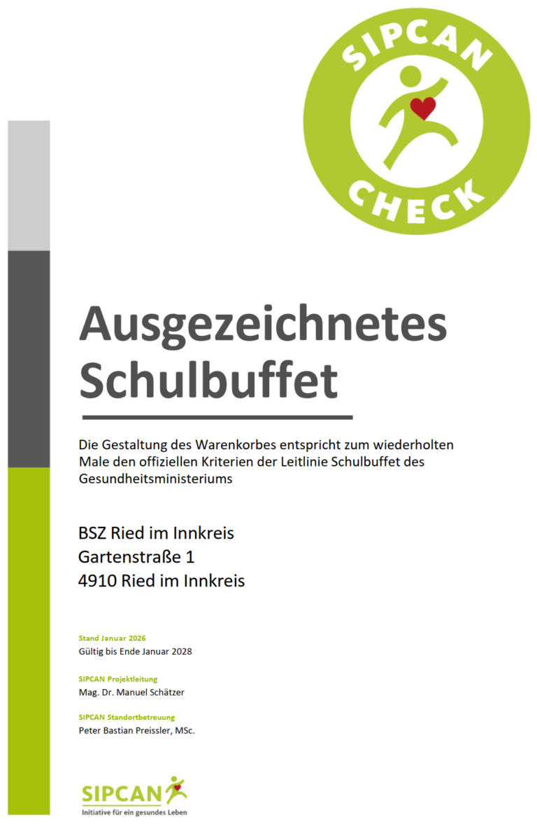 Das Schulbuffet des Bundesschulzentrums wurde erneut ausgezeichnet. Danke für das breite Angbebot... und danke an das freundliche und kreative Bedienungspersonal!